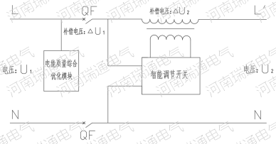 电压U2=电压U1+补偿电压△U1±补偿电压△U2 低压自动调压器接线示意图